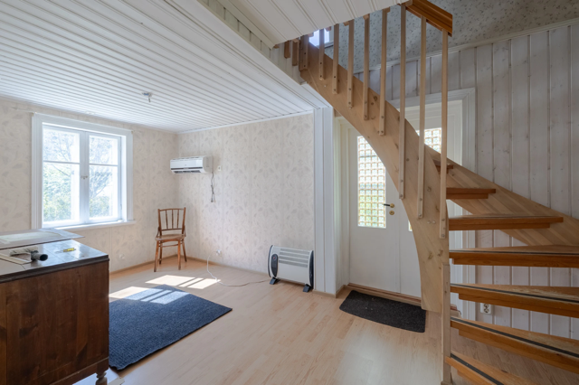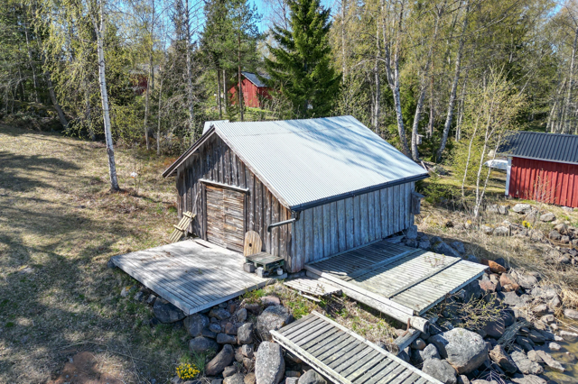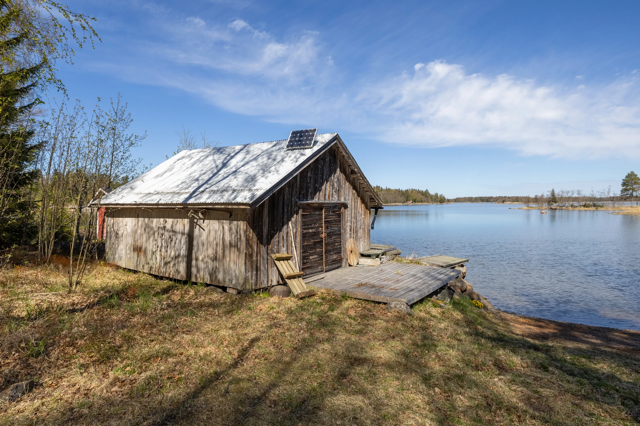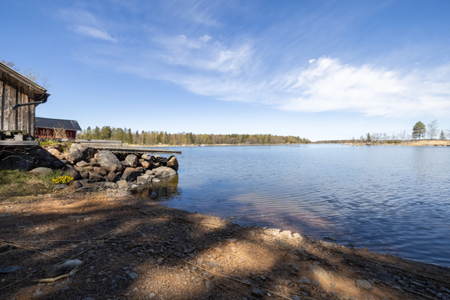 Denna charmiga helhet är belägen på en egen tomt om 3 870 m², som fördelar sig på två separata tomtdelar. Den ena tomten ligger alldeles vid strandkanten och erbjuder fantastiska möjligheter att njuta av havets närhet och naturens lugn. Huvudbyggnaden ligger på andra sidan vägen i förhållande till stranden.