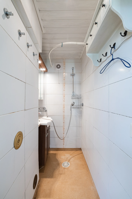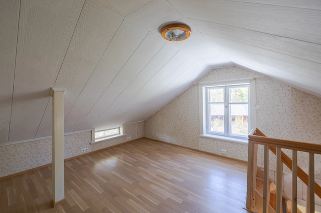 I det rymliga kök-vardagsrummet finns gott om skåp- och arbetsutrymme samt plats för matbord med utsikt över den grönskande omgivningen. Köket övergår naturligt i vardagsrummet, och extra utrymme erbjuds av den generöst tilltagna inglasade terrassen, där även ett större sällskap ryms för att njuta av soliga sommardagar. Loftet erbjuder sovplatser, och komforten höjs ytterligare med luftvärmepump på nedre plan.