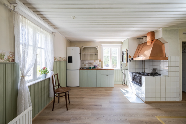 Tilavassa tupakeittiössä on sopivasti kaappi- ja työtilaa ja paikka ruokapöydälle vehreiden maisemien äärellä. Keittiön tiloja jatkaa luontevasti olohuone, ja lisäneliöitä tarjoaa reilunkokoinen lasitettu terassi, mihin mahtuu suurempikin porukka istumaan ja nauttimaan aurinkoisista kesäpäivistä. Parvi puolestaan tarjoaa makuutilat ja lisäviihtyvyyttä tuo alakerran ilmalämpöpumppu.