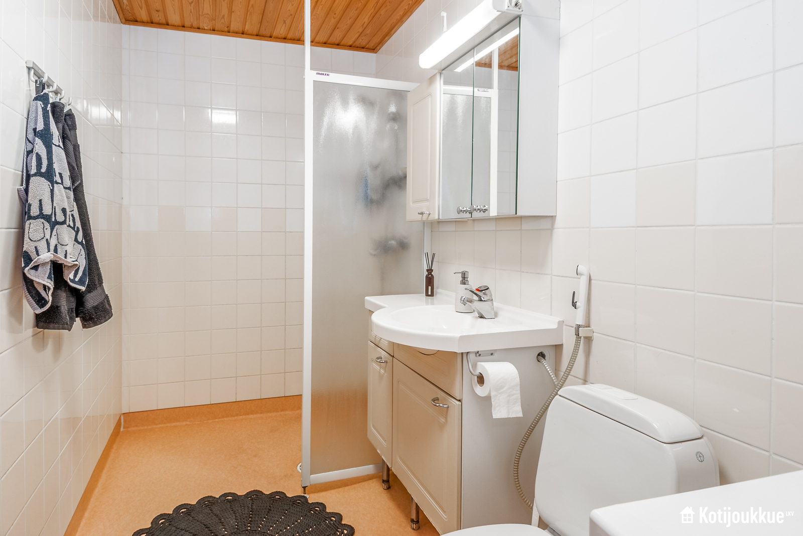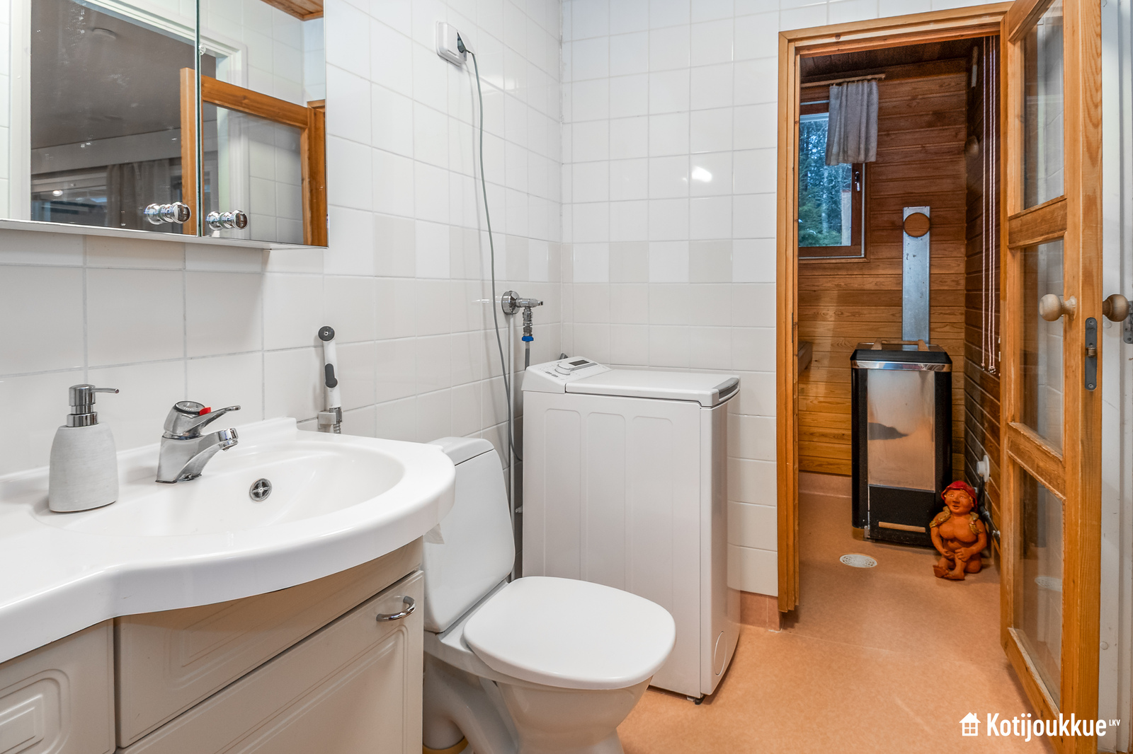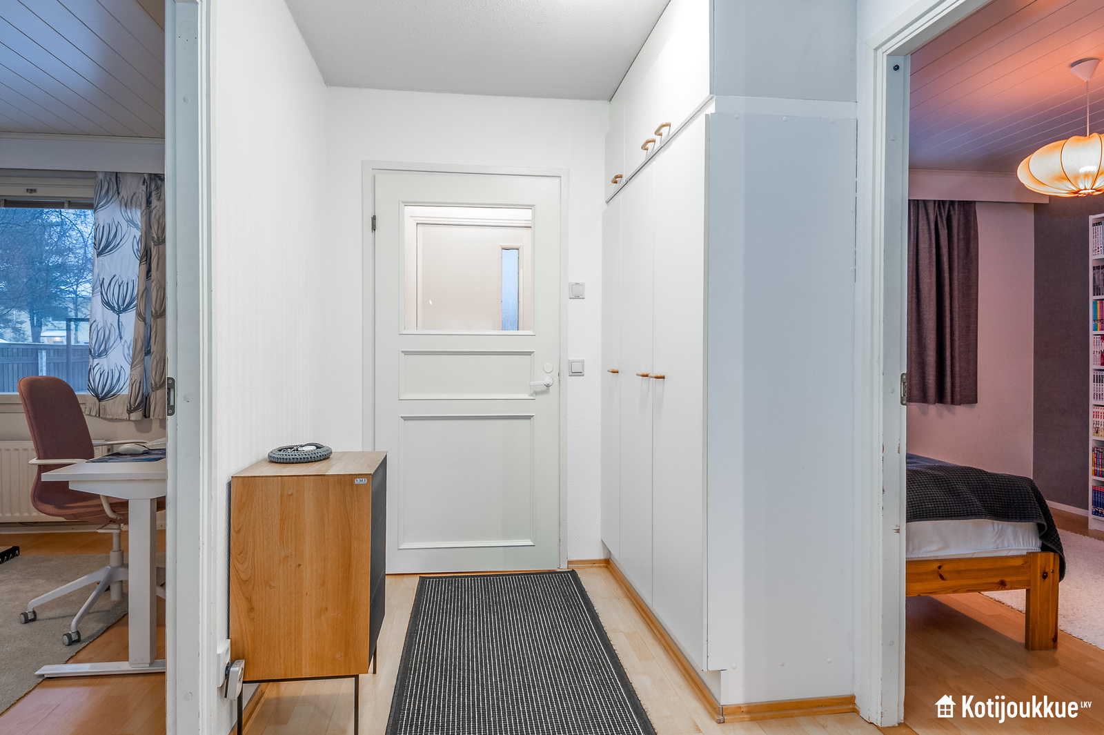 Kodista löytyy kaksi tilavaa makuuhuonetta, joista toisen yhteydessä erillinen vaatehuone. Kokonaisuuden kruunaa hyvät kodinhoitotilat kylpyhuoneen yhteydessä, sekä viihtyisä ikkunallinen sauna.