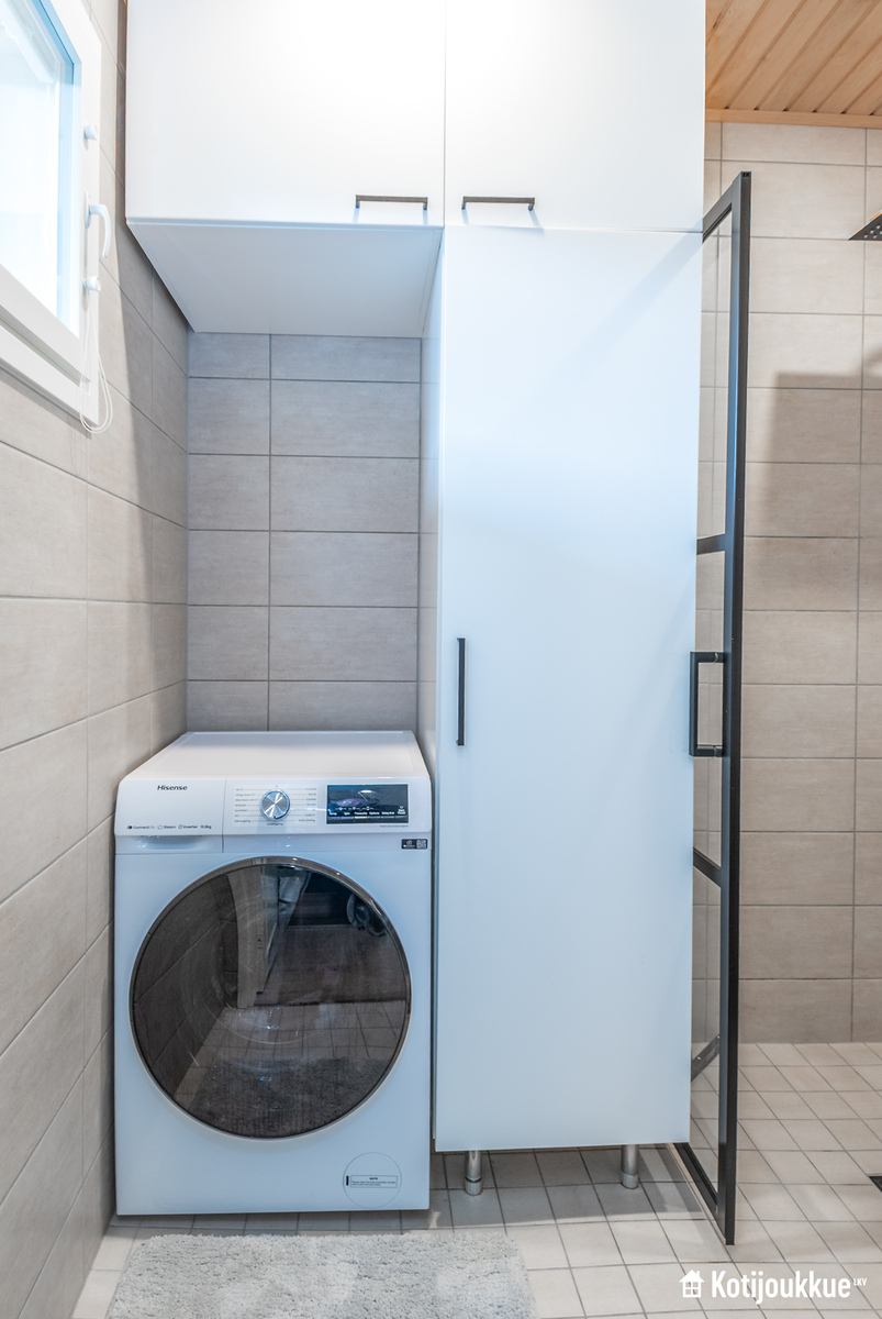 Kylpyhuoneen yhteydessä pieni kodinhoitotila