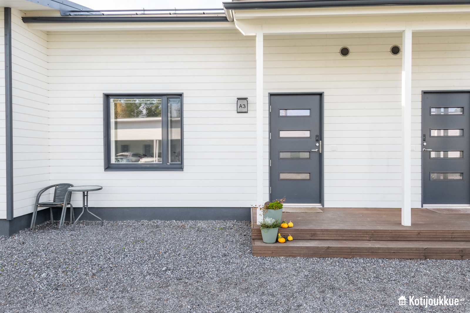 Bostads Ab Korsholms Kotimetsä, färdigställt år 2022, är modernt och bekymmersfritt boende för lång tid framöver. Uppvärmningen sker med ekologisk jordvärme, och hemmet har vattenburen golvvärme – inga element som stör inredningen! De energieffektiva lösningarna bidrar till låga boendekostnader. Skötselavgift 3,5 € / m².