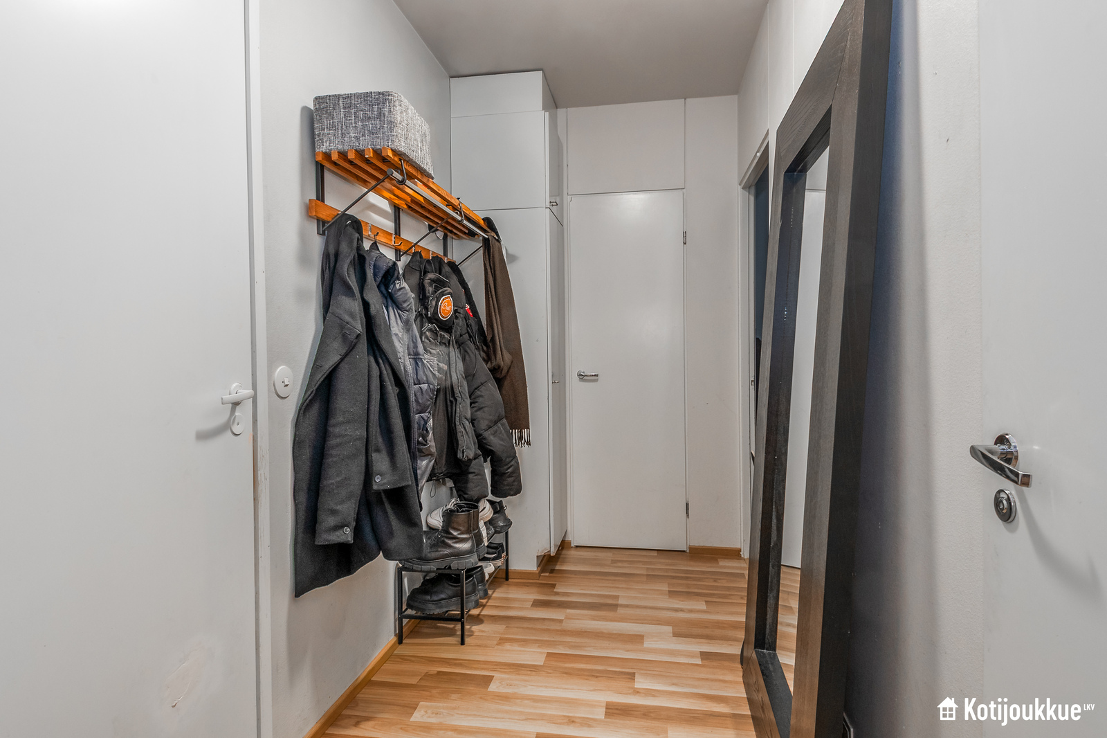 Säilytysratkaisuista huolehtii tilava erillinen vaatehuone ja hyvät kaappitilat, sekä taloyhtiön huoneistokohtainen irtainvarasto.