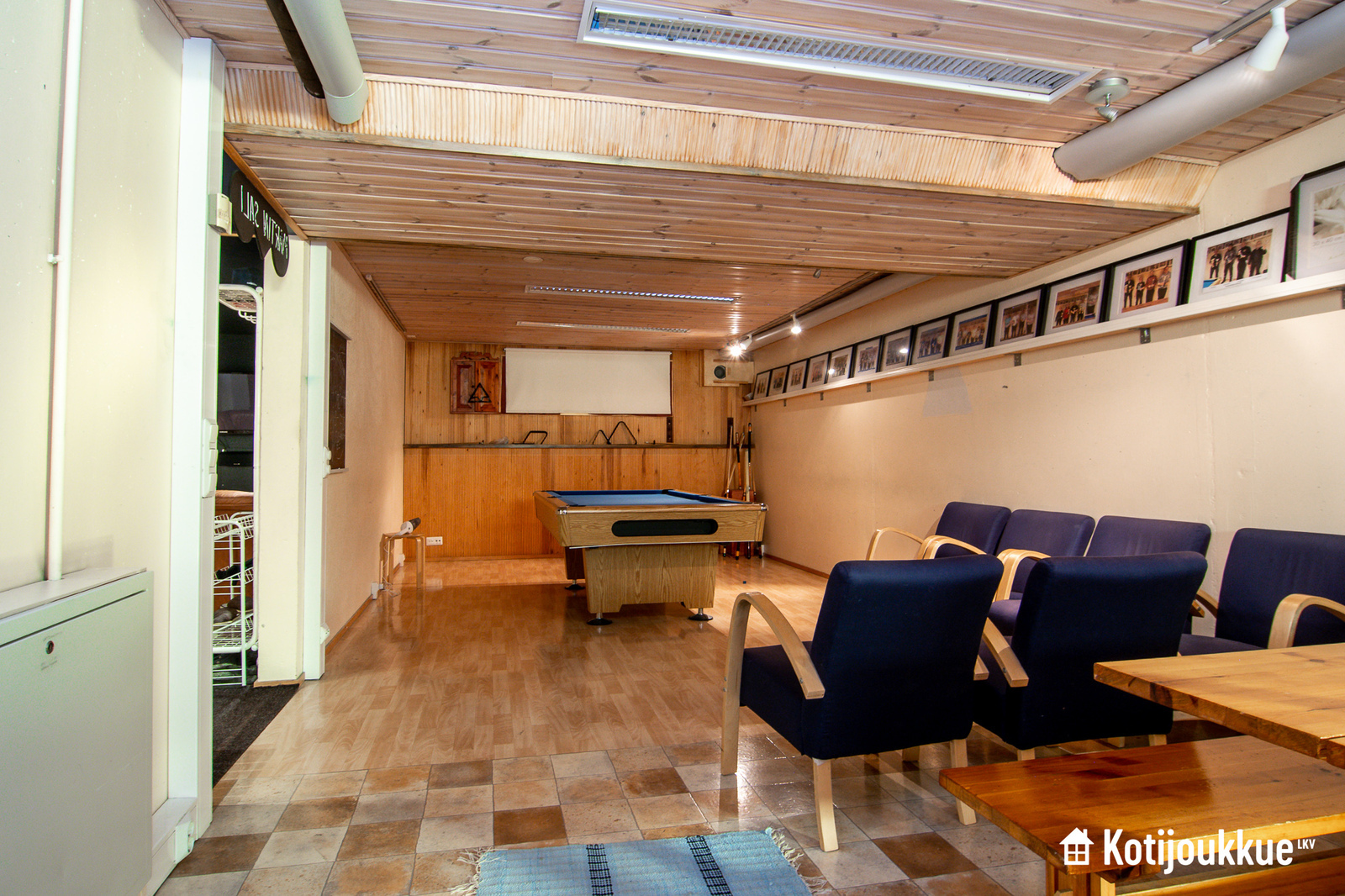 Yhtiön tiloissa mm. Kuntosali ja biljardipöytä.