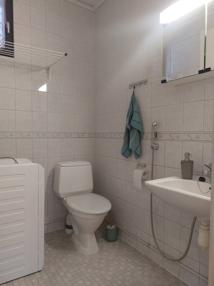 - pesukoneliitäntä, suihku, peilikaappi, kiinteät valaisimet