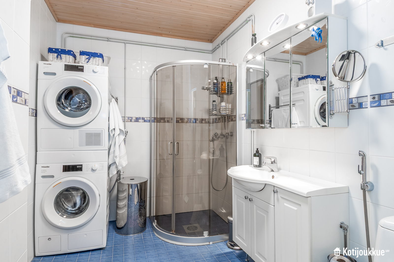 suihkukaappi, pesukoneliitäntä, lattialämmitys, wc-istuin, suihku
