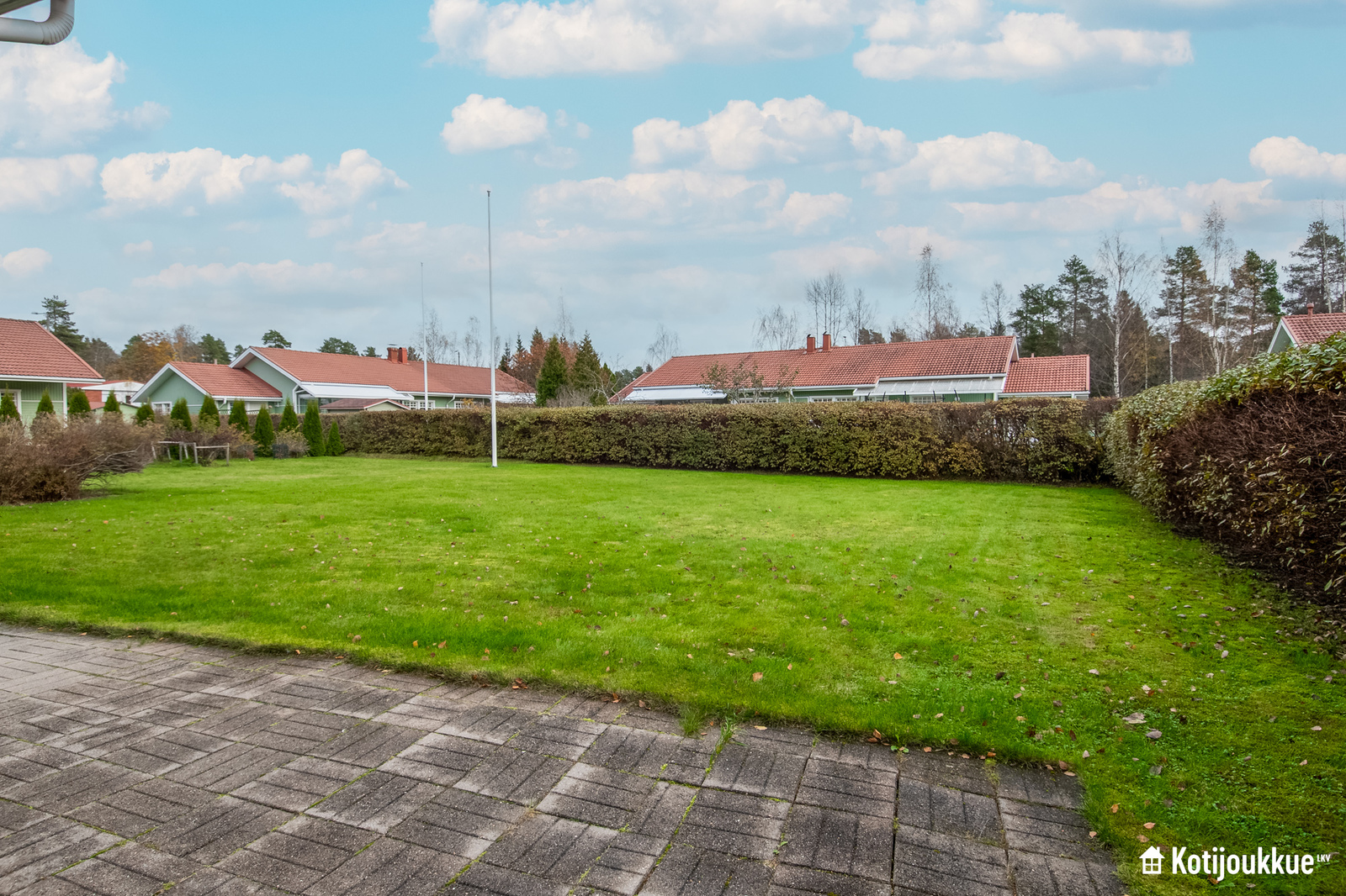 Hemmet är en harmonisk och vacker helhet med en tydlig planlösning som gör vardagen smidig. Direkt vid entrén möts du av ett rymligt kök med gott om förvaringsutrymme och plats för matbord. Vardagsrummet är stort och erbjuder många inredningsmöjligheter – perfekt för familjens gemensamma stunder. Härifrån har du även utgång till terrassen på baksidan, som under sommaren fungerar som en naturlig förlängning av sällskapsutrymmena. Tack vare parhusformationen sträcker sig gården ända till husets gavel, vilket ger gott om plats även för en liten köksträdgård.