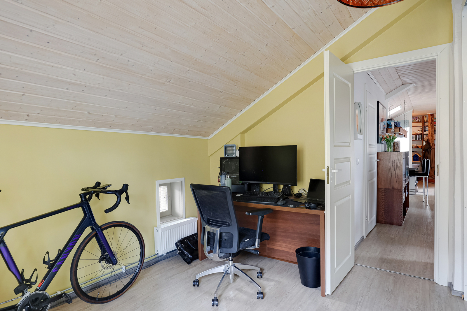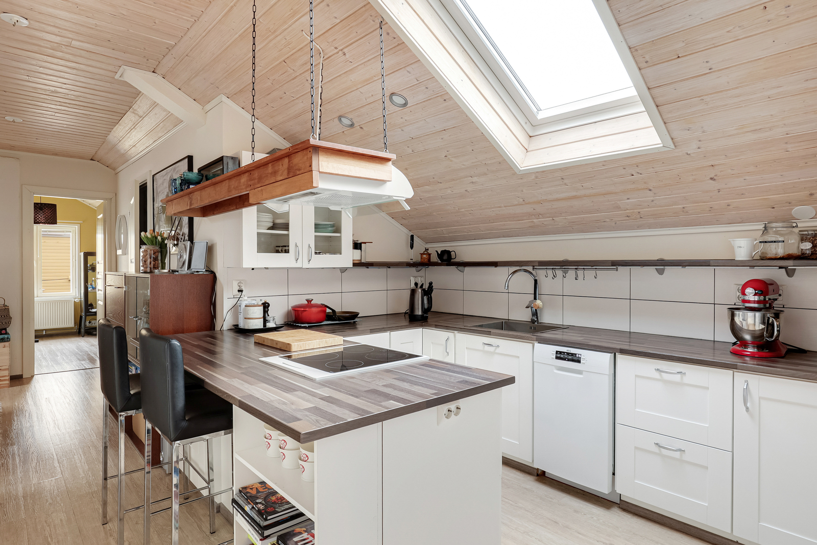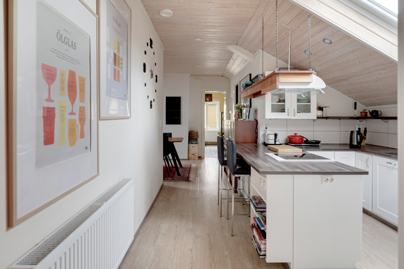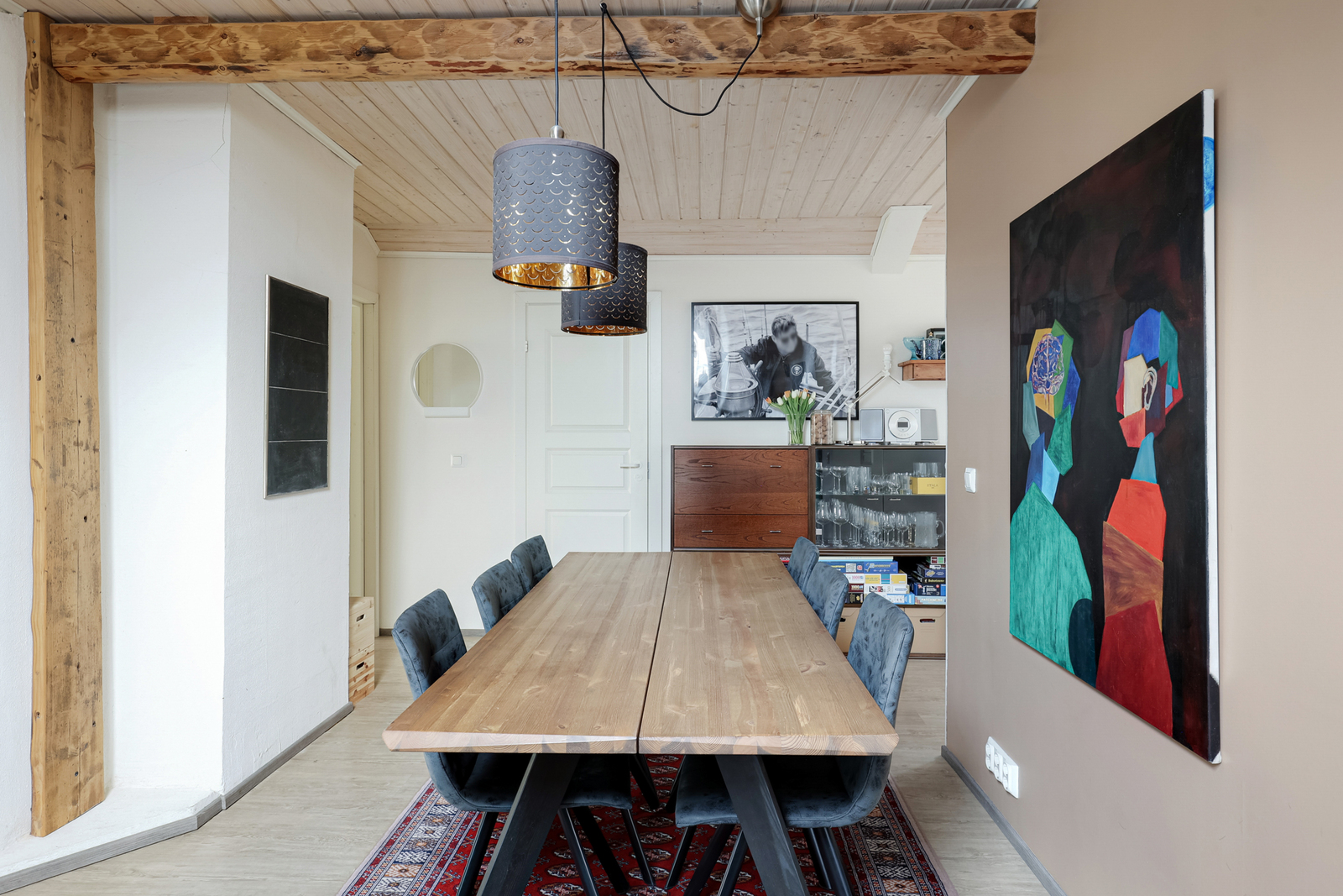 Tämän valloittavan kodin tilat sijoittuvat puutalon toiseen kerrokseen, joita on remontoitu hyvällä maulla nykyaikaisen asumisen tarpeet täyttäviksi. Täällä historia ja nykypäivä kohtaavat juuri oikealla tavalla.