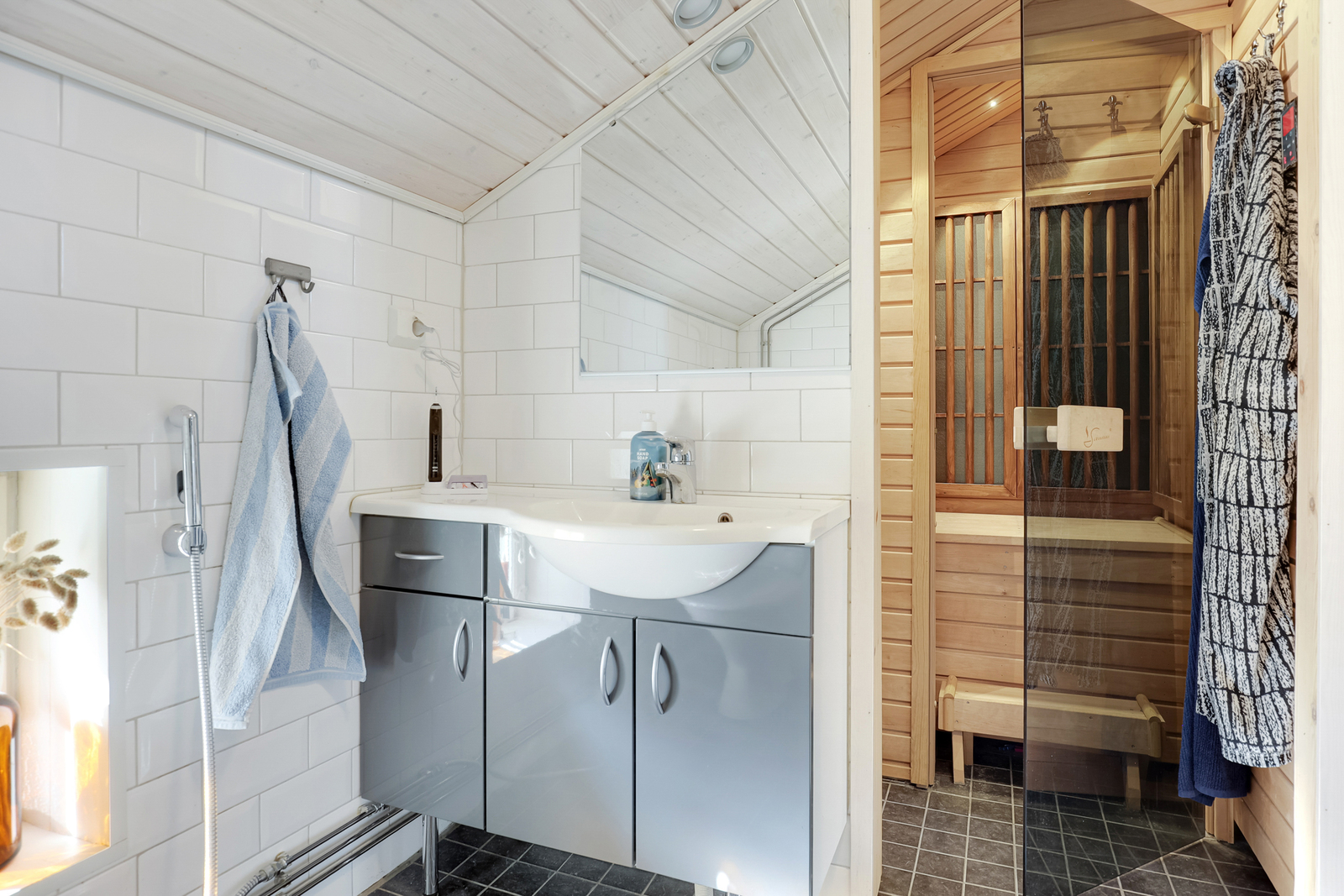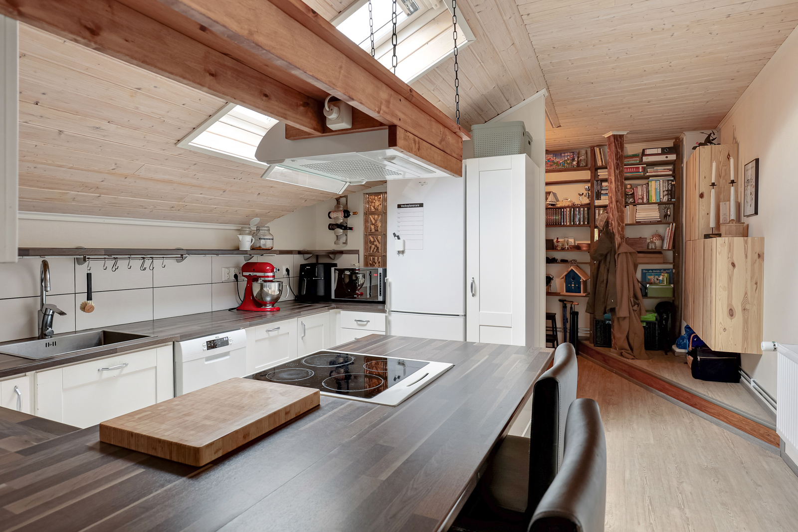 Hemmet pryds av vackra klassiska färger och material. Byggnadsårets karaktär framhävs av flera personliga detaljer, såsom sneda takfönster, en öppen spis samt imponerande synliga stockbalkar. Bostaden erbjuder två sovrum, ett badrumsutrymme med infraröd bastu, ett trivsamt sällskapsutrymme samt ett inbjudande kök.