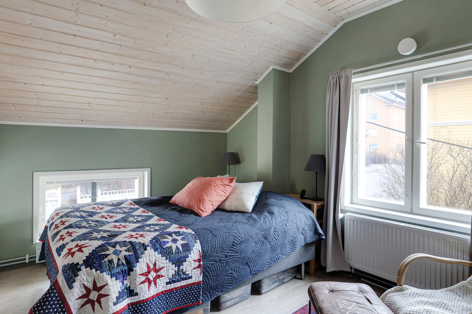 Tätä kotia koristaa kauniit klassiset sävyt ja materiaalit. Rakennusvuodelle tunnusomaista tyyliä korostavat useat persoonalliset yksityiskohdat, kuten vinot kattoikkunat, avotakka, sekä upeat hirsiparrut. Kodissa on kahden makuuhuoneen lisäksi kylpyhuoneosasto infrapunasaunalla, oleskelutila sekä viihtyisä keittiö.