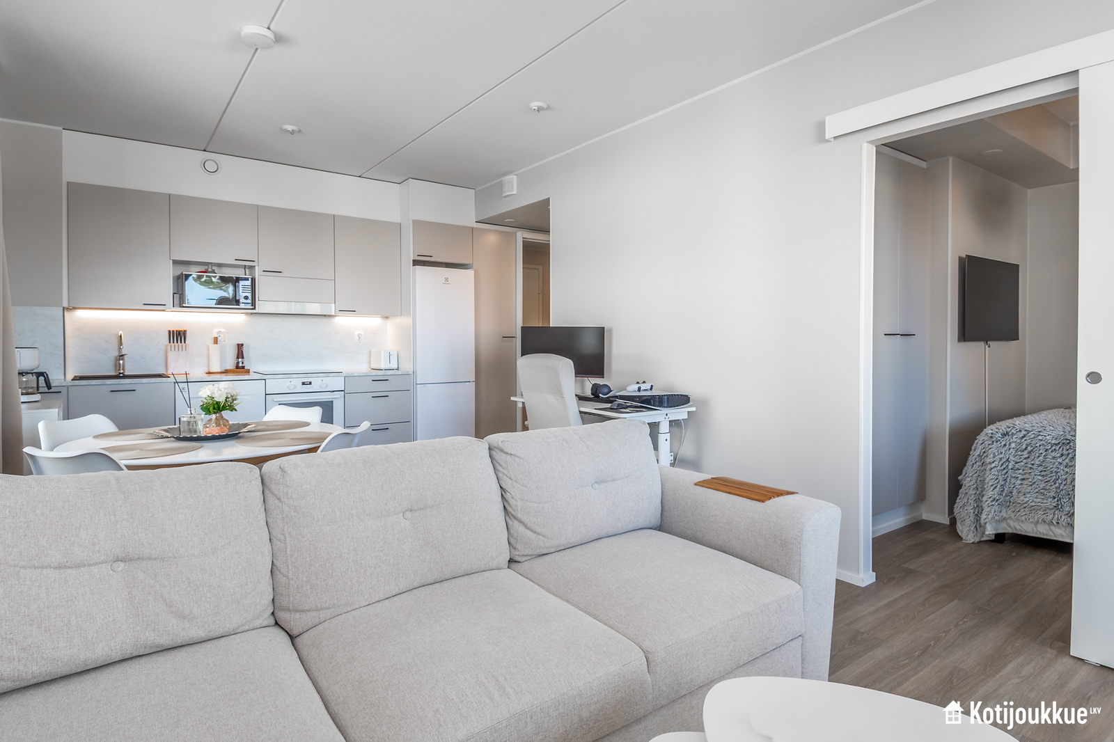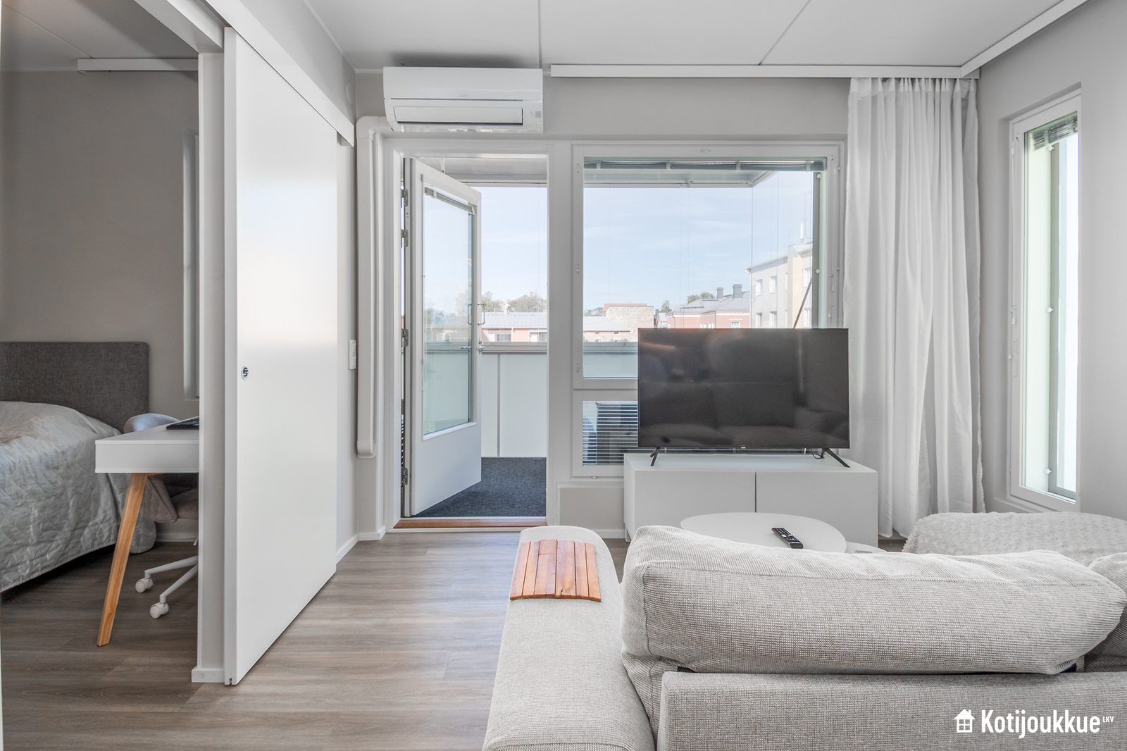 Välkommen att bekanta dig med denna moderna och nästan ny tvåa i fjärde våningen, belägen strax intill Vasa centrum! Bostaden bjuder på en öppen planlösning samt en exceptionellt stor inglasad balkong – perfekt för avkoppling.