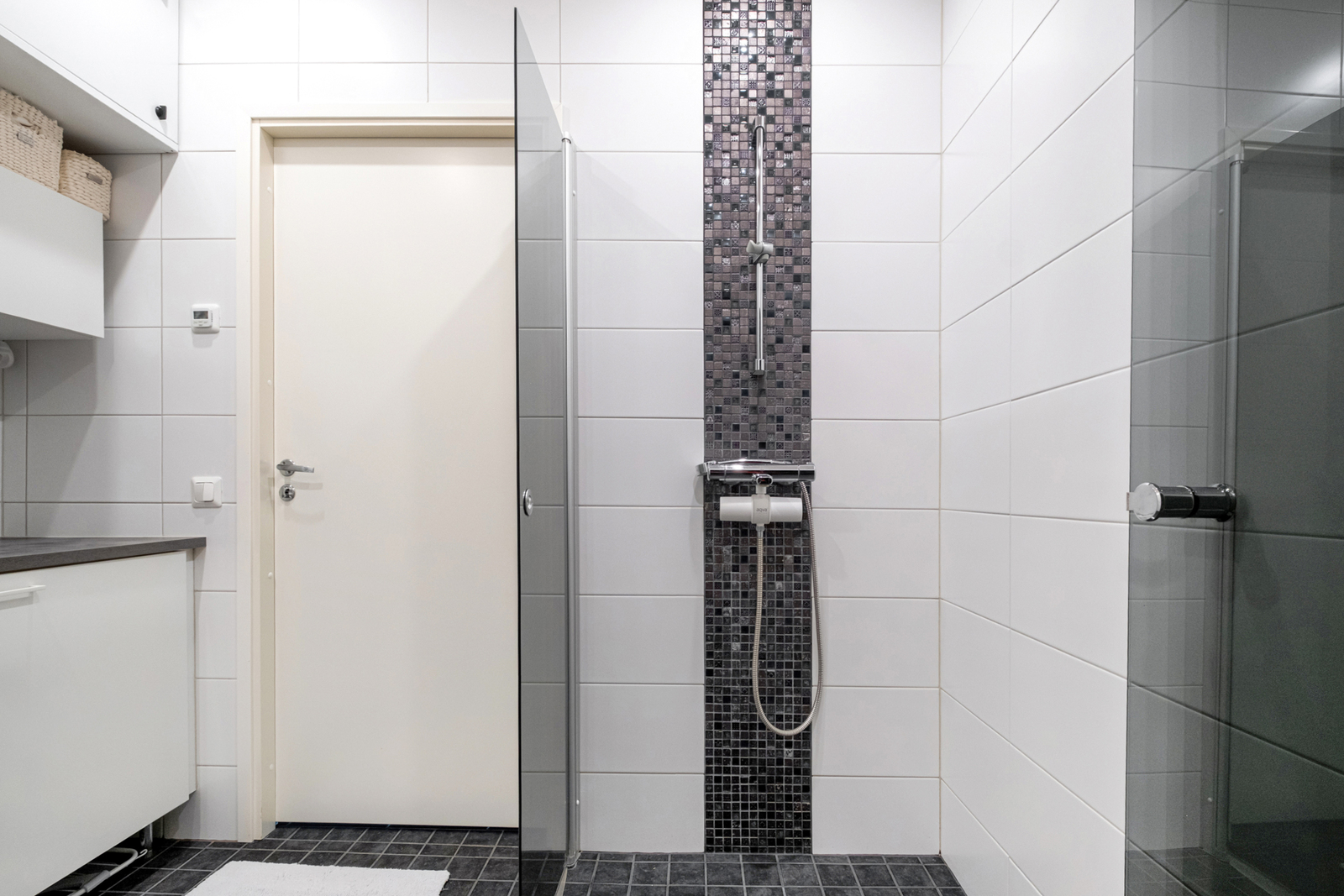 suihkuseinä, pesukoneliitäntä, suihku