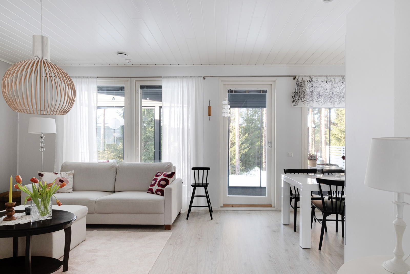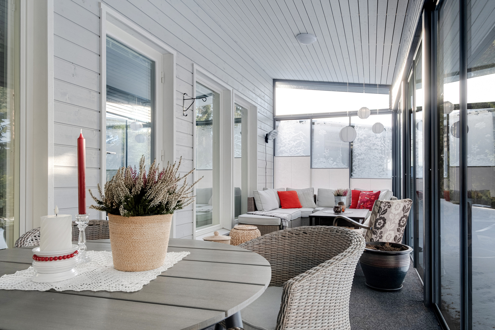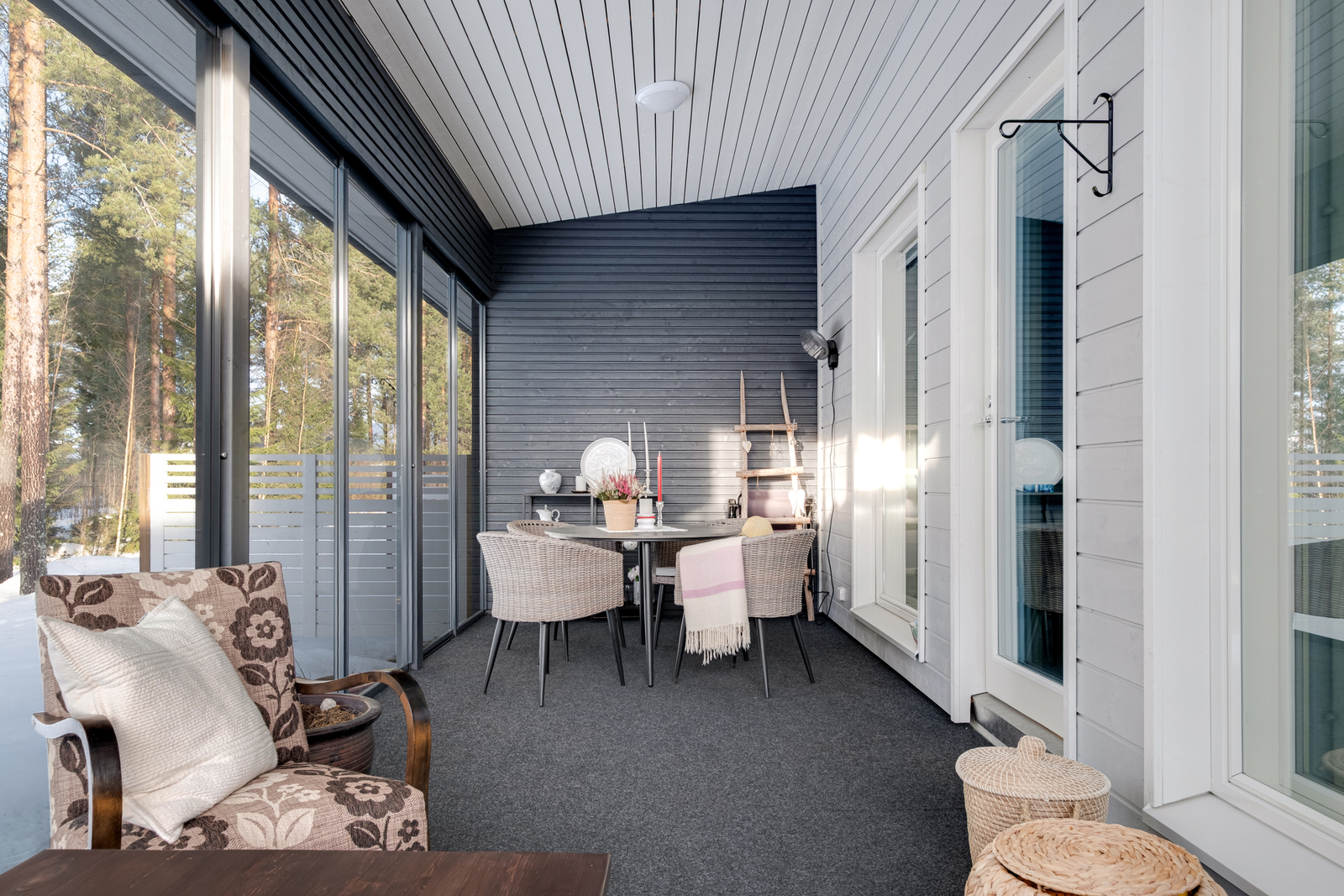 Bostaden har en funktionell och praktisk planlösning där vardagens behov har beaktats. Det ljusa vardagsrummet utgör hemmets hjärta och erbjuder gott om plats för umgänge. Från vardagsrummet finns utgång till den stora inglasade terrassen, som fungerar som ett utmärkt extra rum från tidig vår till långt in på hösten. Terrassen är en perfekt plats för avkoppling, sommarens måltider eller trevliga stunder med vänner.