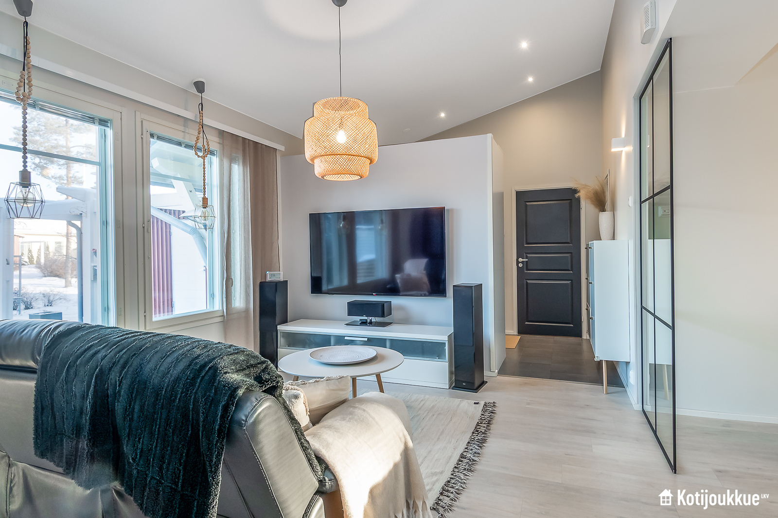 Tyylikäs ja valoisa yksitasoinen paritalo lapsiperheiden suosimalla rauhallisella Pukinjärven pientaloalueella.