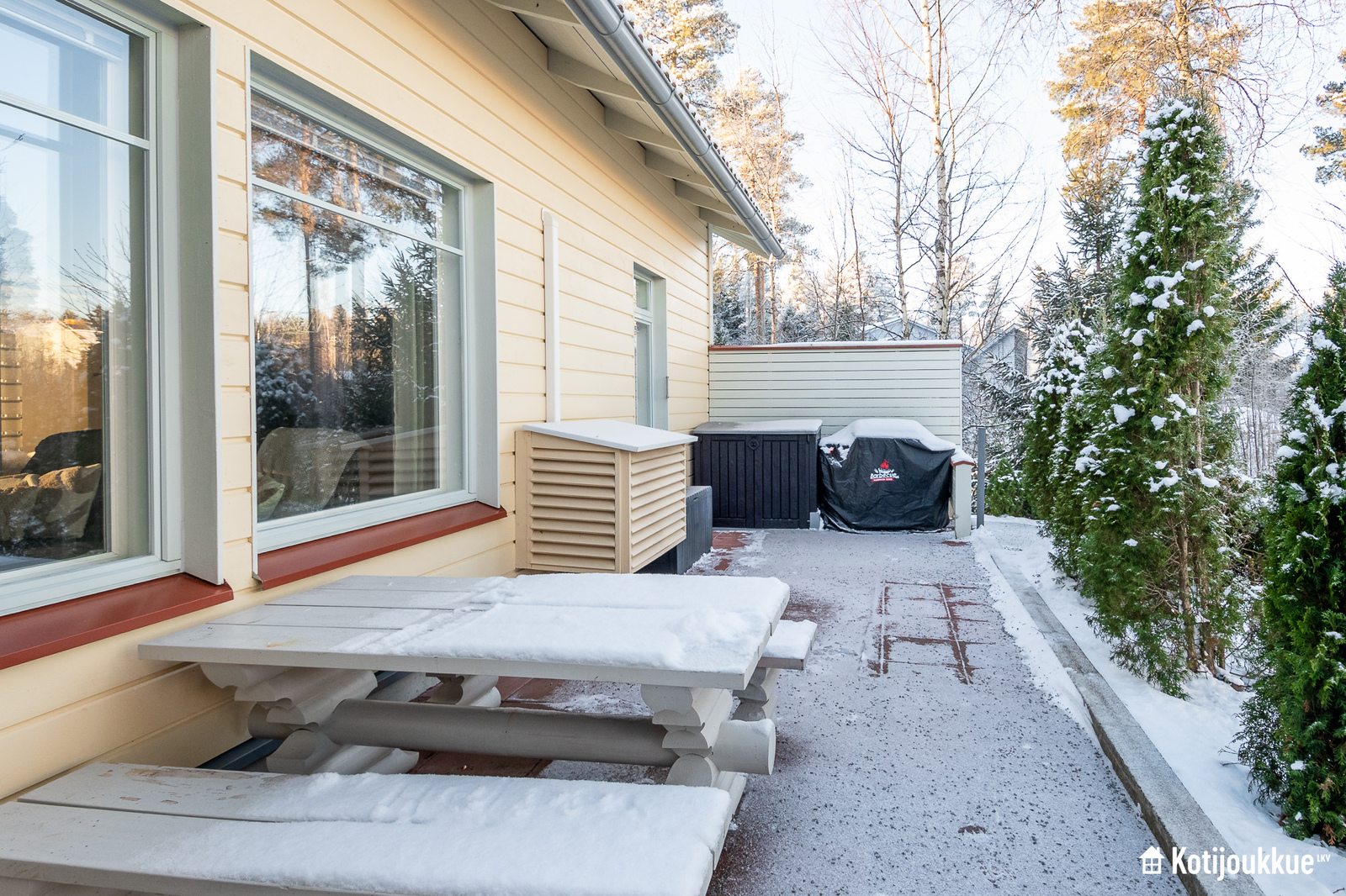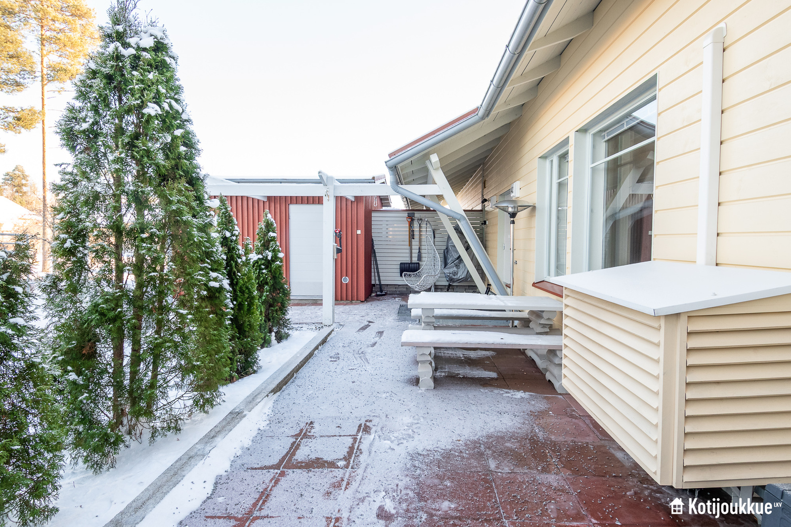 Ajaessasi tämän kodin pihapiiriin, huomaat saapuneesi viehättävään kohteeseen, jossa suojaisa piha rajoittuu puistomaiseen alueeseen ja tarjoaa näin omaa rauhaa ulkona oleskeluun. Täällä on hyvin tilaa lasten leikkeihin sekä mieleisillesi istutuksille.