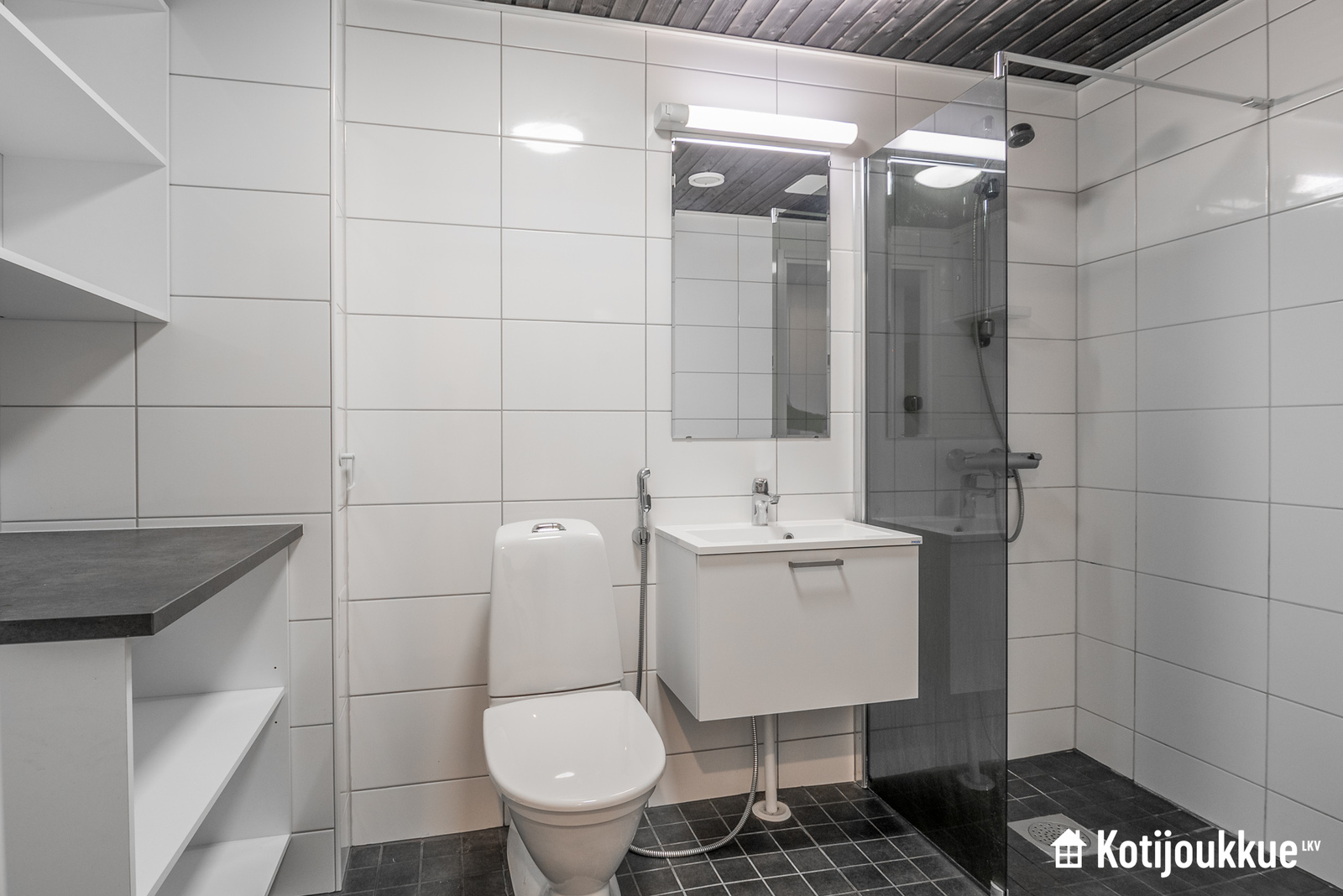 Kodin tyylikäs, vaalea ja harmoninen värimaailma sekä laadukkaat kalusteet luovat hienot puitteet asumiselle. Avoin pohjaratkaisu jättää tilaa monenlaisille sisustusratkaisulle; ruokailulle ja oleskelulle on helposti järjestettävissä omat paikkansa. Eteisestä on kulku tilavaan kylpyhuoneeseen, jonka pintamateriaalit toistavat asunnon tyylikästä värimaailmaa.